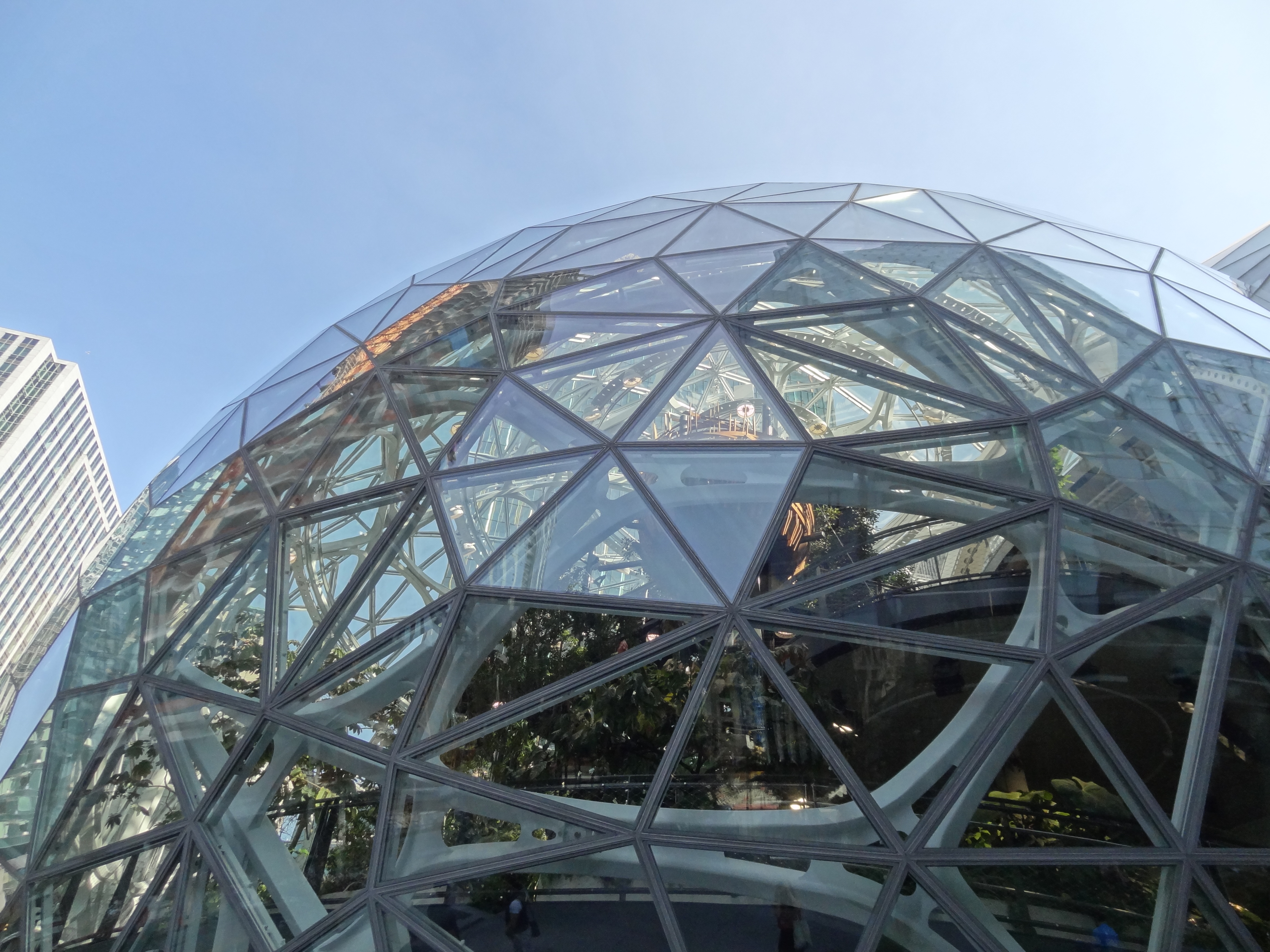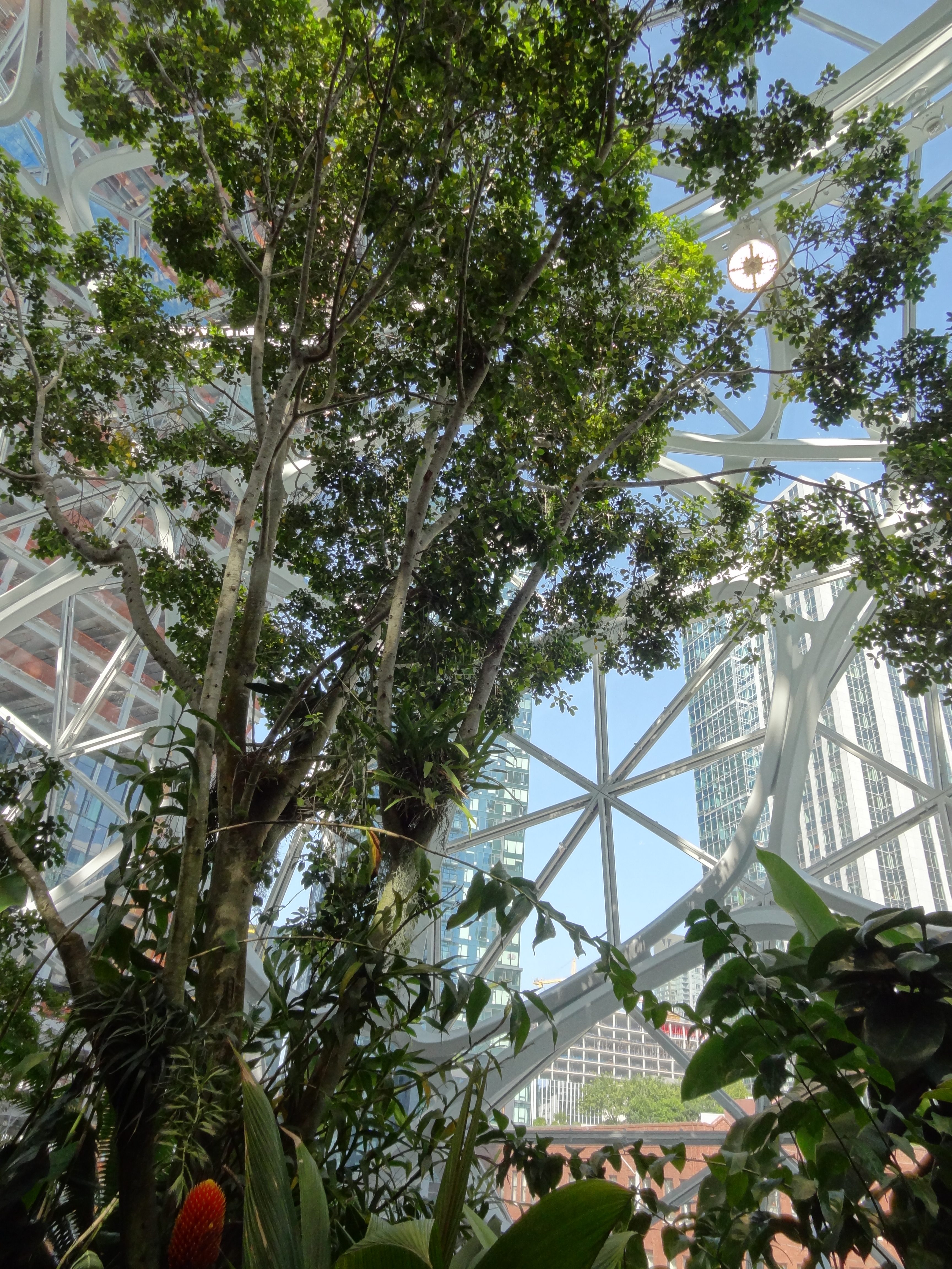 Pour la fin de journée, petit aperçu d’un autre aspect emblématique de Seattle, j’ai nommé « Amazon ». Eh oui, c’est à Seattle que se trouve le siège du géant mondial du e-commerce. Nous avons donc fait un tour au Amazon Go Store, dont le concept est le suivant : on prend un produit sur le rayon, et hop, on sort du magasin, sans rien payer. Enfin presque, car la nuance est importante : par je ne sais quel système, votre achat est directement débité sur votre compte Amazon. Le futur du shopping ? Je ne sais pas. En tous cas c’est un peu chelou si vous voulez mon avis, car ça fait quand même attraction pour touristes en proie à une fièvre technologico-consumériste :p Pour la suite, nous avons eu la chance de rencontrer une connaissance de Quan qui travaille chez Amazon. Cela nous a permis de rentrer pour visiter les « Amazon Spheres », de grandes sphères toutes de métal et de verre, qui abritent de nombreuses plantes, un mur végétal, une fontaine, des lieux de réunions… J’ai trouvé l’architecture vraiment belle et futuriste, ça vaut le coup d’œil. Pour finir, petit tour dans le quartier animé de Capitol Hill, histoire, entre autre, de dire bonjour à la statue de Jimi Hendrix.