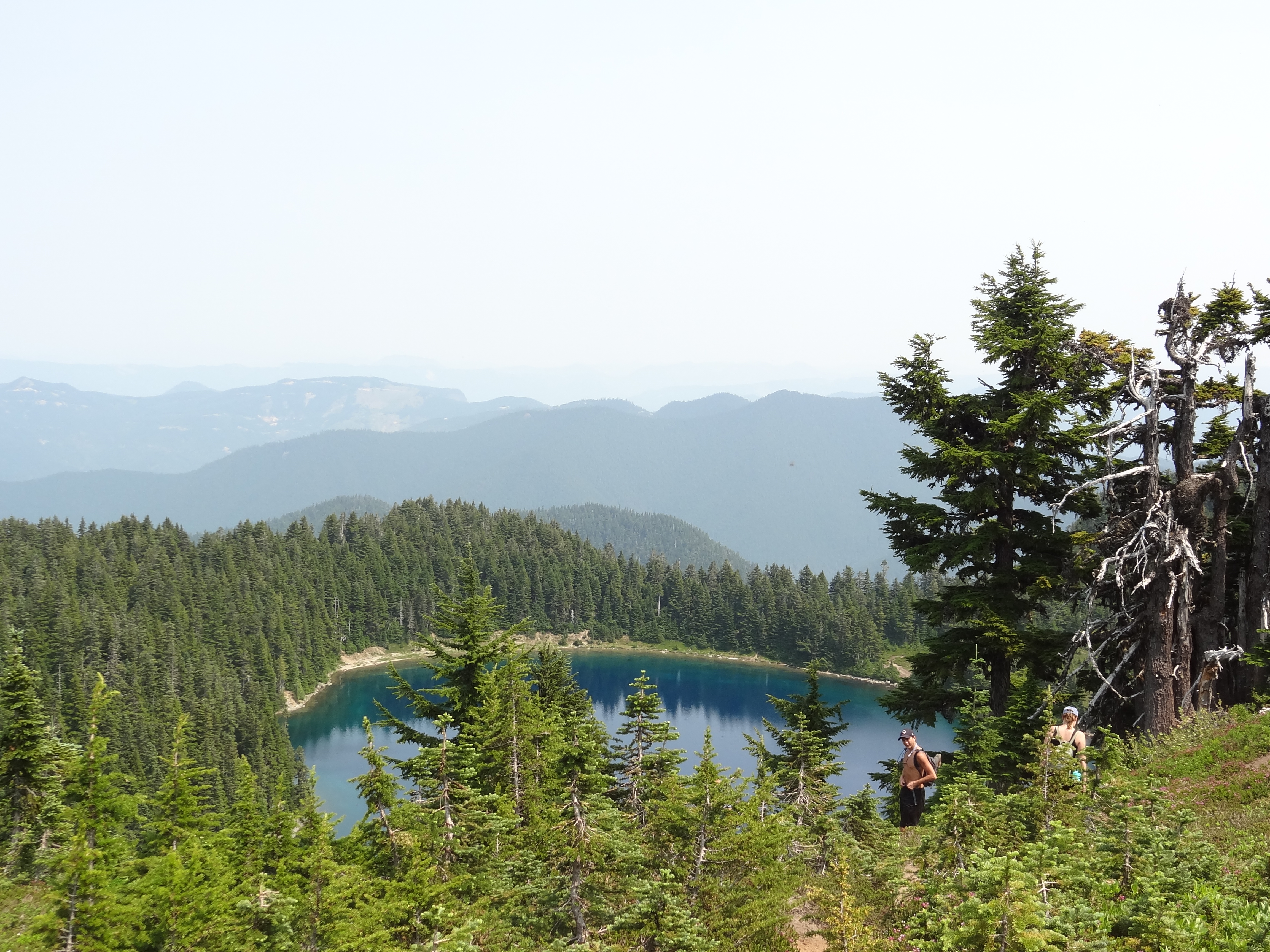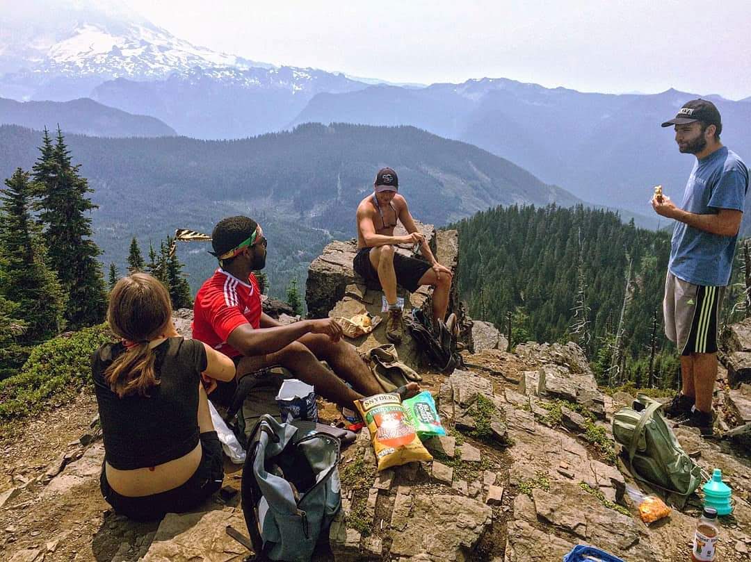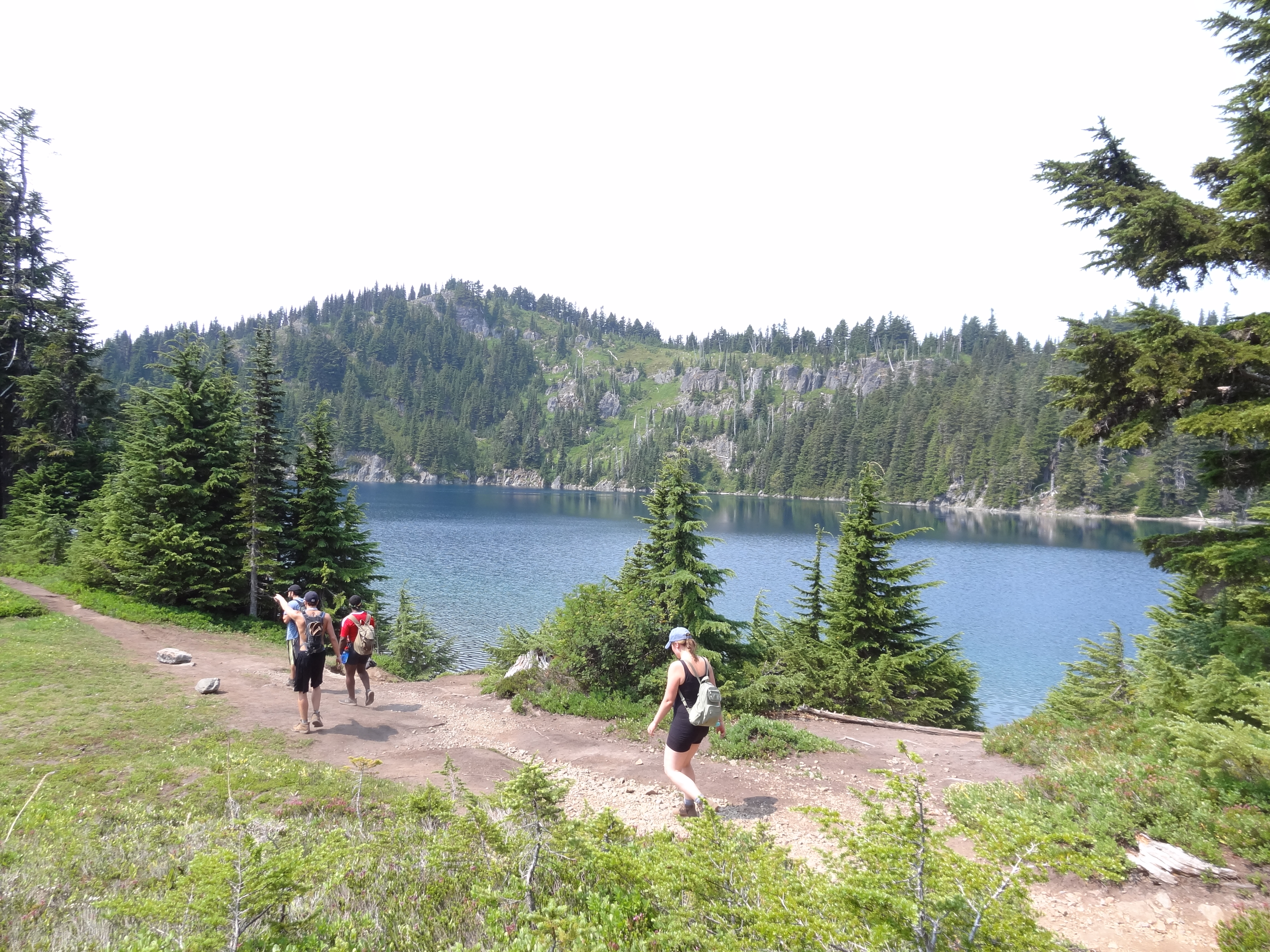Le lundi, un peu de sport au programme ! Nous sommes partis à 5 faire une petite randonnée appelée « Summit Lake », avec vue sur le Mont Rainier, montagne emblématique de la région. Super randonnée, mais un peu difficile d’accès vu l’état de la route/du chemin qui y menait (la Subaru avec 4 roues motrices n’était pas de trop, et les talents du conducteurs non plus…). Malheureusement la vue était un peu bouchée en haut et ne nous laissait pas apprécier le Mont Rainier autant que prévu, mais la récompense de la baignade dans le lac, tout seuls, a bien compensé cela.