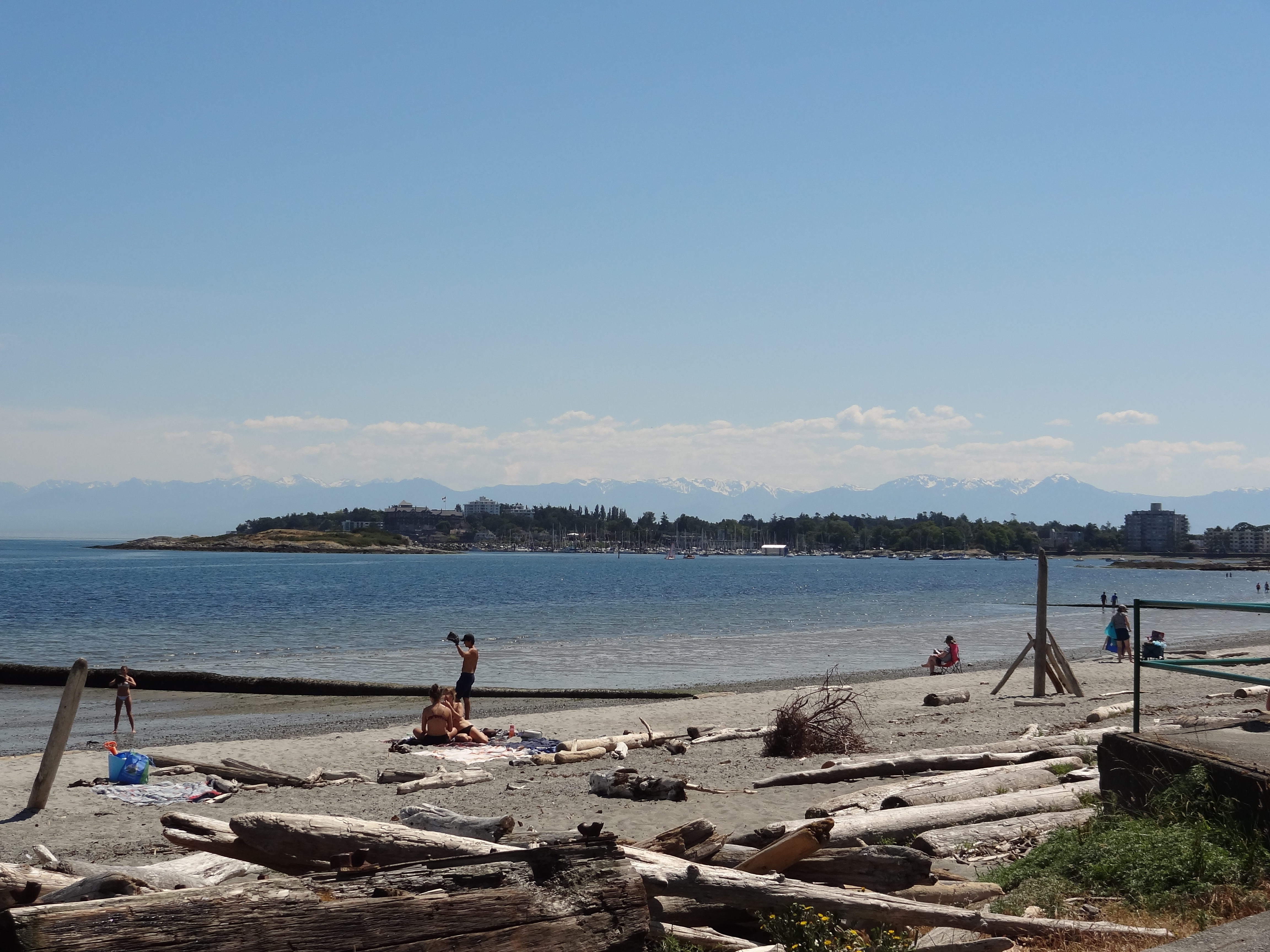 Le lendemain, là encore le contact fut facile (ça a l’air d’être dans l’ADN de l’auberge), une petite discussion sympathique avec un japonais, un espagnol et une allemande. J’ai enfin réussi à me mettre en route pour la Willows Beach à l’est de la ville. Il faisait très chaud, je me suis dit que c’était le moment où jamais pour me baigner au Canada, ne sachant pas quand j’en aurai encore l’occasion ! Ca piquait, mais c’était agréable. Une de choses qui m’a marquée au Canada, c’est la facilité avec laquelle les gens se parlent. C’est assez étonnant pour nous, puisque nous ne sommes pas trop friands de cela en France et avons plutôt tendance à être sur la défensive. Bref, toujours est-il qu’après avoir engagé la conversation de manière tout à fait random avec une fille sur la plage, nous avons bien discuté. Elle était québécoise mais étudiait à l’université de Victoria. J’ai passé un peu de temps avec elle et son copain, et nous avons échangé nos contacts pour potentiellement nous revoir à l’avenir.